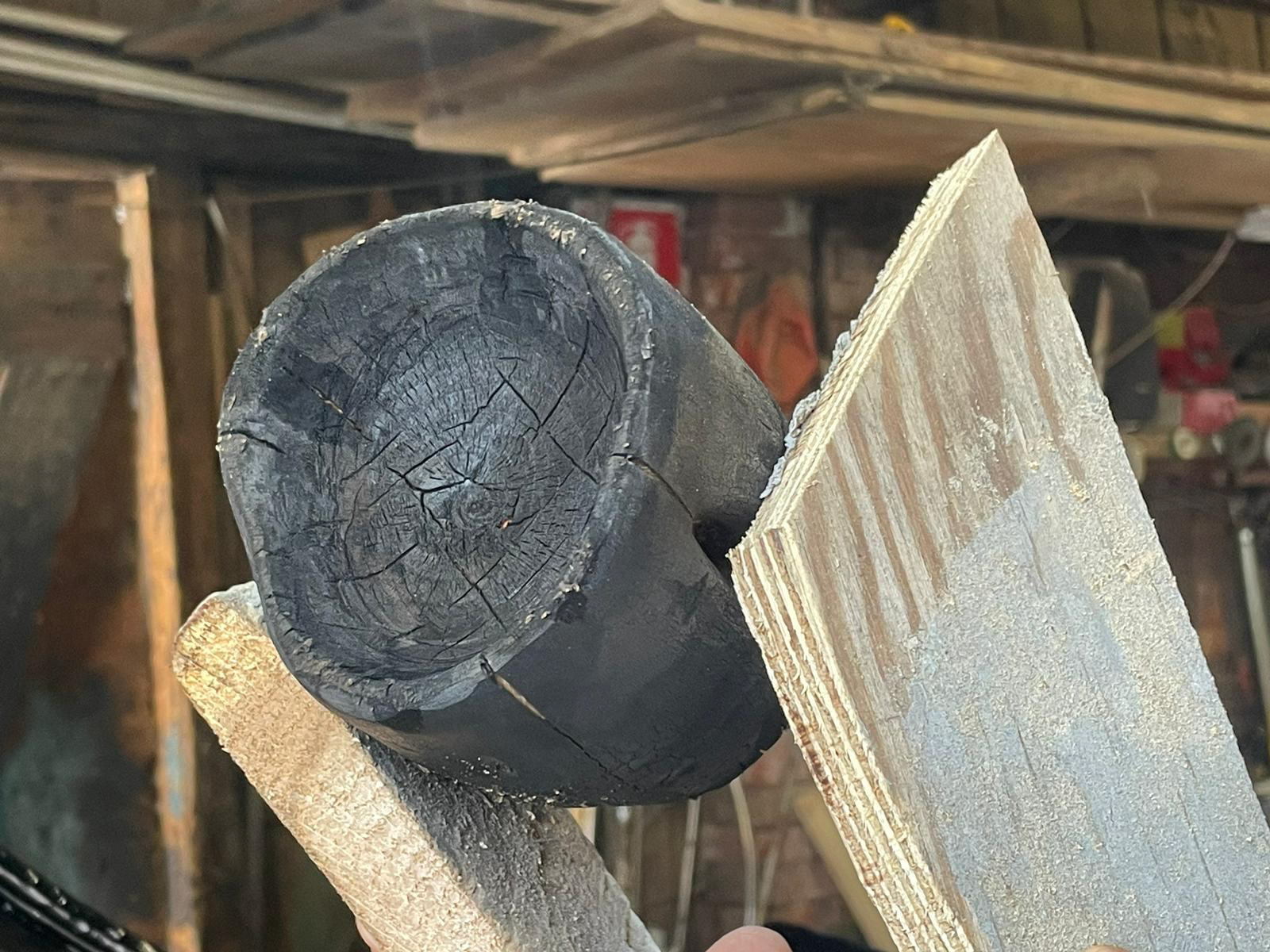 Le basi carbonizzate sono ottenute da ceppi di legno che sono stati sbozzati e lavorati manualmente.